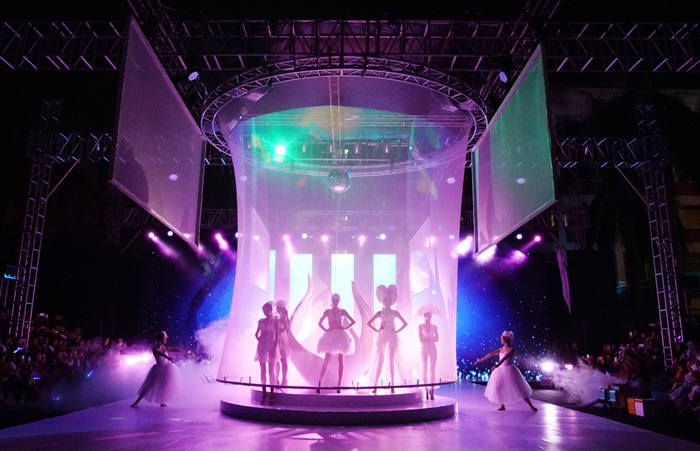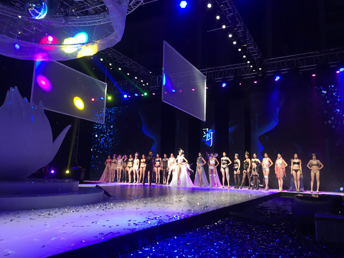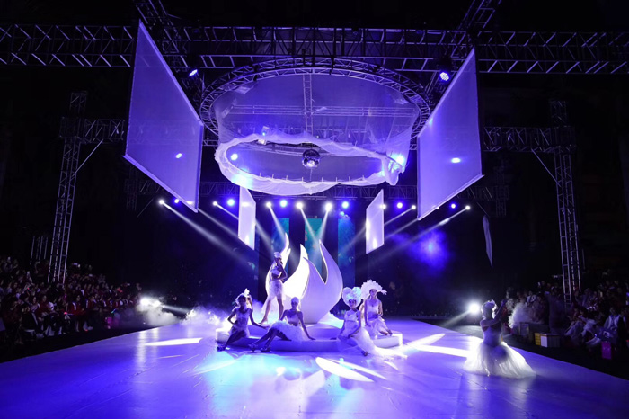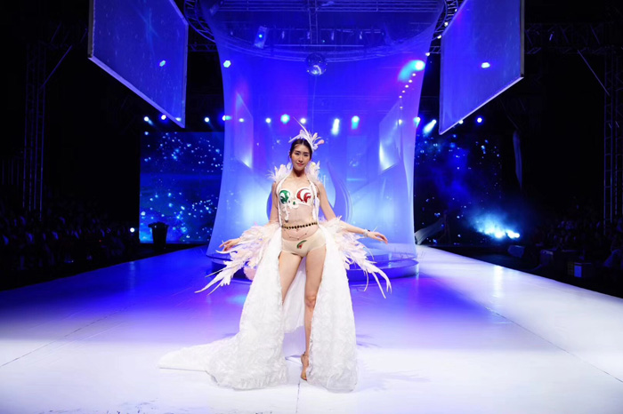 露天的舞台设计,以“羽”为主题呈现出天堂般的神秘之息,多元化的模特表演和纯白的舞台设计,打破常规T台的标准机械,让人看到奇妙无比的内衣大秀。