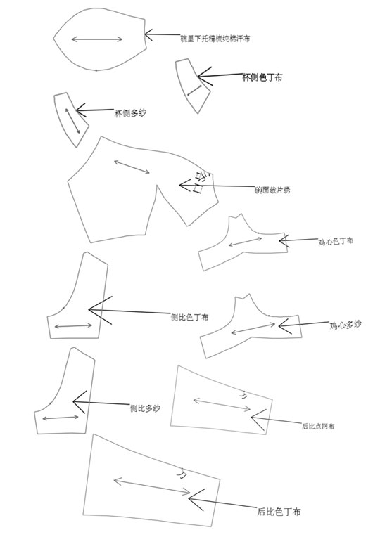 1.“奥丝蓝黛”文胸产品操作工序以60道左右为流程。
